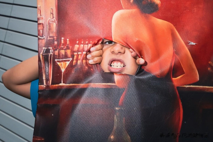 在具体主题上,Luca 的作品有几个显著特征:人物与背景的“巧合共振”,衣着图案与墙面海报呼应,剪影与广告图示拼成一件“新物件”,让人二次确认才恍然一笑;机缘营造的视觉错位,距离与透视制造的“叠罗汉”错觉,恰到好处的遮挡让平面产生戏剧感;决定性瞬间的幽默表达,鸟的掠过、车灯一闪、人群回头的一秒钟,正好成为画面的关键标点。